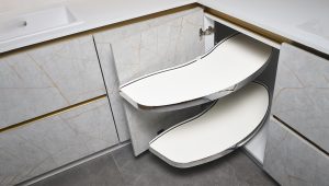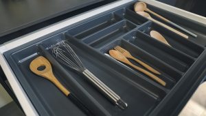 این کابینت ها هنگام باز شدن سبدهایی متصل به درب دارن که با چرخش درب بیرون میاد و یه نوع دسترسی فوق العاده به ما میده و برای دیدن یکباره ی همه ی قابلمه ها مناسبه.
