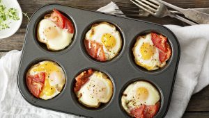 با استفاده از قالب مافین یا کاپ کیک، در هر فنجان یک تخم مرغ قرار دهید و به مدت 30 دقیقه در فر با دمای 325 درجه سانتیگراد بپزید. تخم مرغ ها را از روی حرارت بردارید و در یک حمام یخ قرار دهید تا خنک شوند. تخم مرغ ها را پوست بگیرید و لذت ببرید.